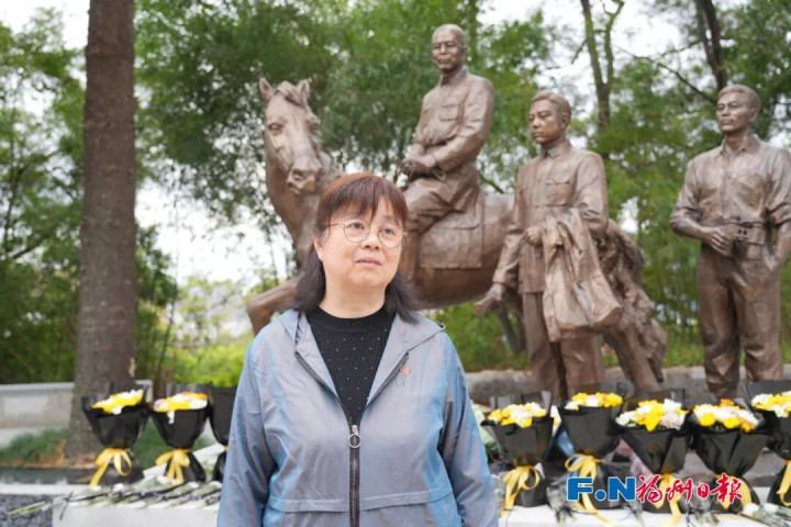 在吴石、聂曦、王正钧烈士雕塑前,吴石烈士孙女吴红,朱枫烈士孙女朱容瑢、孙子朱则安,陈宝仓烈士外孙陈皓、外孙女李敏,聂曦烈士侄子黄仁晶、侄孙女黄怡然,隐蔽战线先辈罗青长、何遂的后人以及《沉默的荣耀》史实顾问郑立,福建省国家安全厅干警代表整齐列队,肃立默哀。